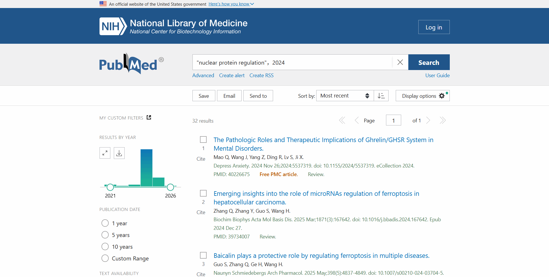 24-22篇:https://pubmed.ncbi.nlm.nih.gov/?term=%22nuclear+protein+regulation%22%EF%BC%8C2024&sort=date&size=50&mcpParams=%7B%7D