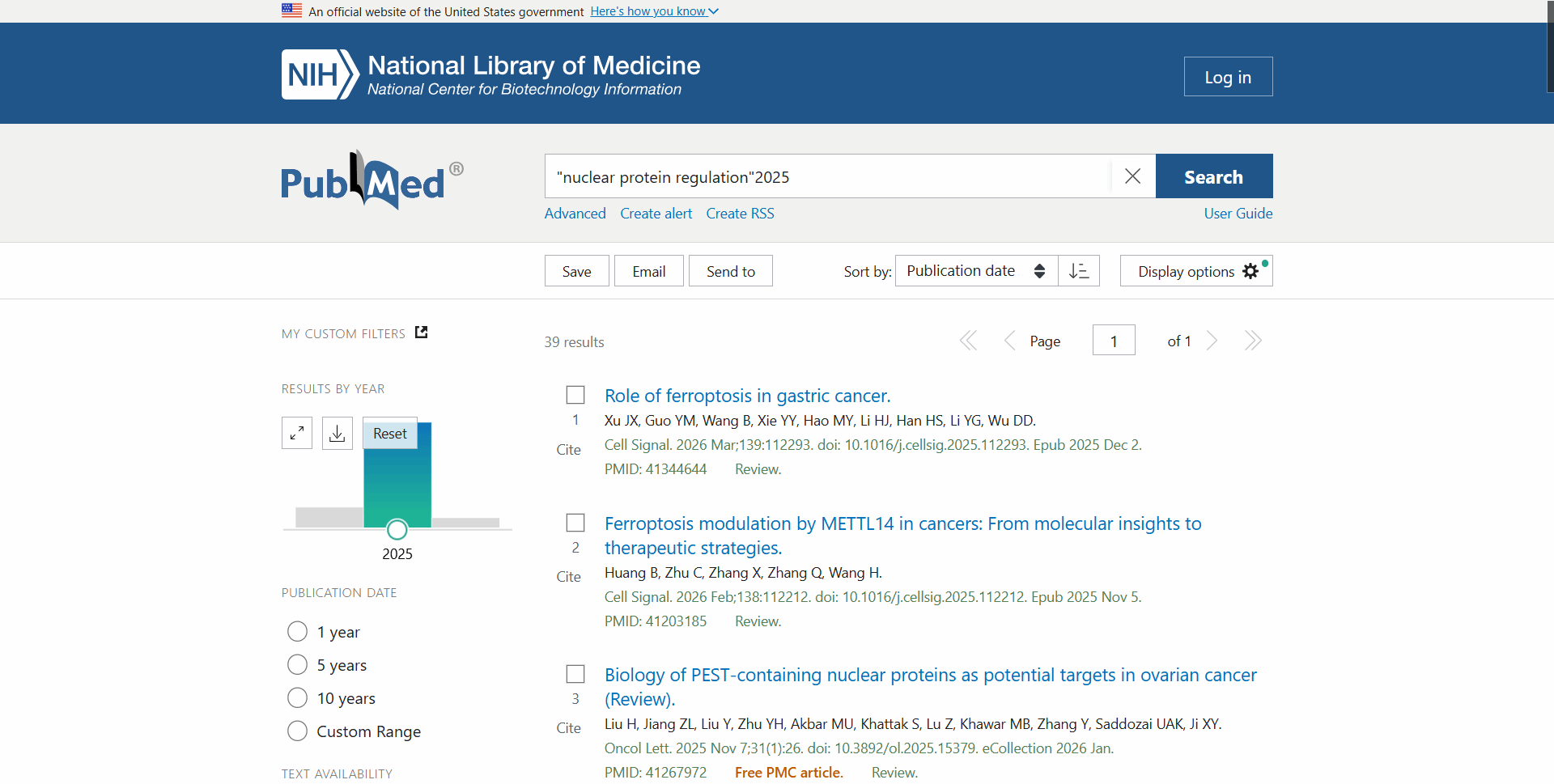 25-37篇:https://pubmed.ncbi.nlm.nih.gov/?term=%22nuclear+protein+regulation%222025&filter=years.2025-2025&sort=pubdate&size=50
